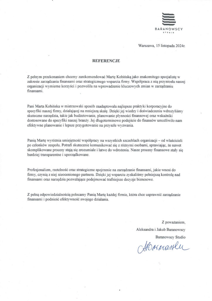 Jej doświadczenie, analityczne myślenie oraz ogromna wiedza w dziedzinie finansów było i jest dla nas ogromnym wsparciem.